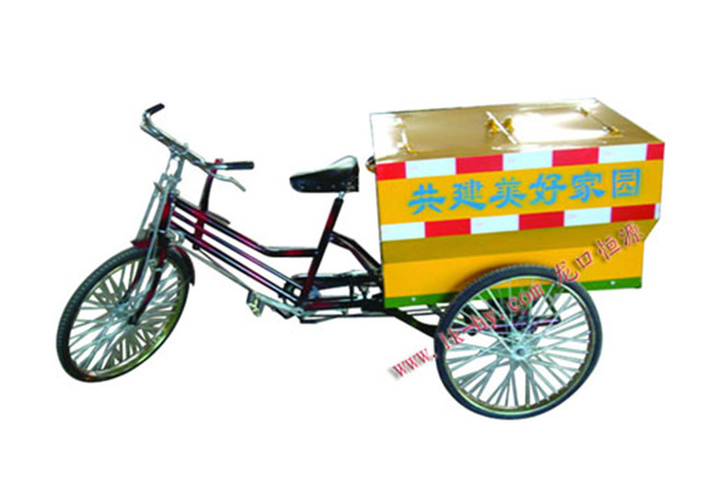 車子采用青島日寶牌加重型自行車,車箱采用1.0mm厚鍍鋅板制作,使用輕便快捷,有效地提高了環(huán)衛(wèi)工人的勞動(dòng)強(qiáng)度。